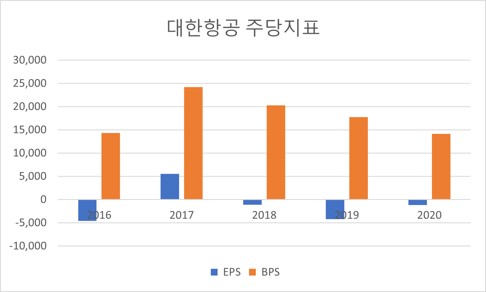 - 대한항공의 EPS는 3년 연속 마이너스였습니다.